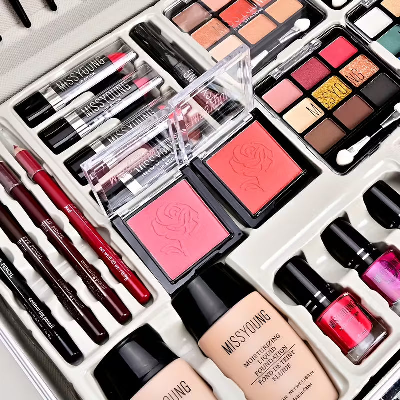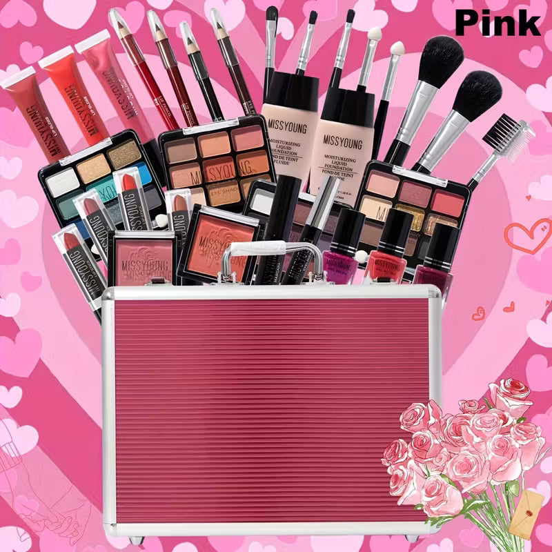 Luxury All-in-One Makeup Set – Silvery Pink Artist Bag, 10 Essentials